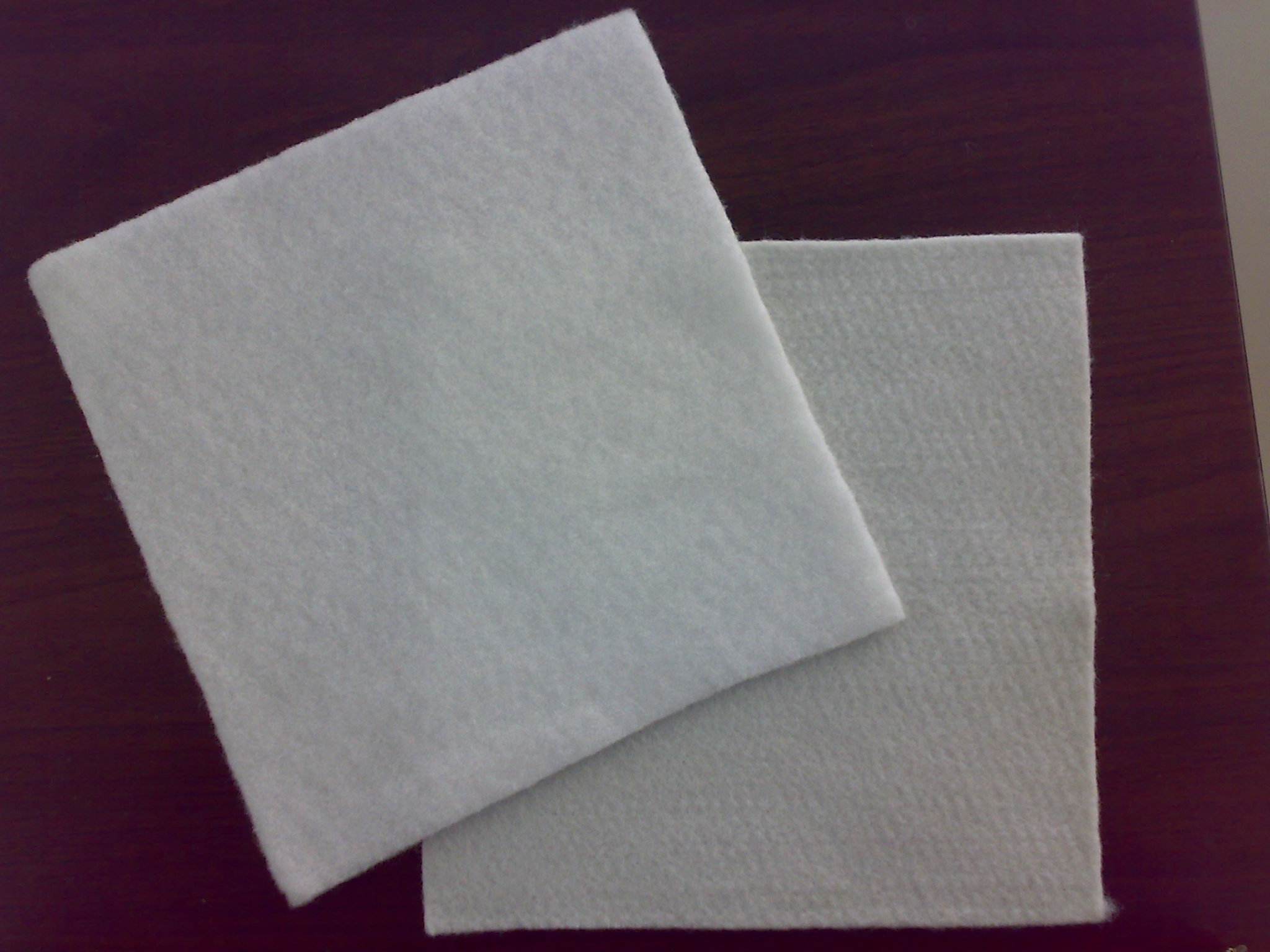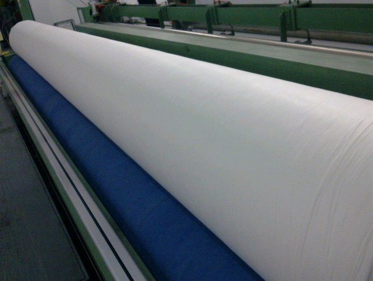 土工布是目前應(yīng)用最廣泛的非織造土工布之一。纖維經(jīng)過開松混合、梳理(或氣流)成網(wǎng)、鋪網(wǎng)、牽伸及針刺固結(jié)最后形成成品,針刺形成的纏結(jié)強度足以滿足鋪放時的抗張應(yīng)力,不會造成撕破、頂破。由于其厚度較大、結(jié)構(gòu)蓬松,且纖維通道呈三維結(jié)構(gòu),過濾效率高,排水性能好。其滲透系數(shù)達10-1~10-2,與沙粒濾料的滲透系數(shù)相當(dāng),但鋪起來更方便,價格也不貴,因此用作反濾和排水最為合適。還具有一定增強和隔離功能,也可以和其它土工合成材料復(fù)合,具防護等多種功能。由于非織造土工布具反濾和排水的特點,因此在水力學(xué)性能方面要特別予以重視,一是有效孔徑;二是滲透系數(shù)。要利用非織造布多孔的性質(zhì),使孔隙分布有利于截留細小顆粒泥土又不致于淤堵,這必須結(jié)合工程的具體要求,予以滿足。